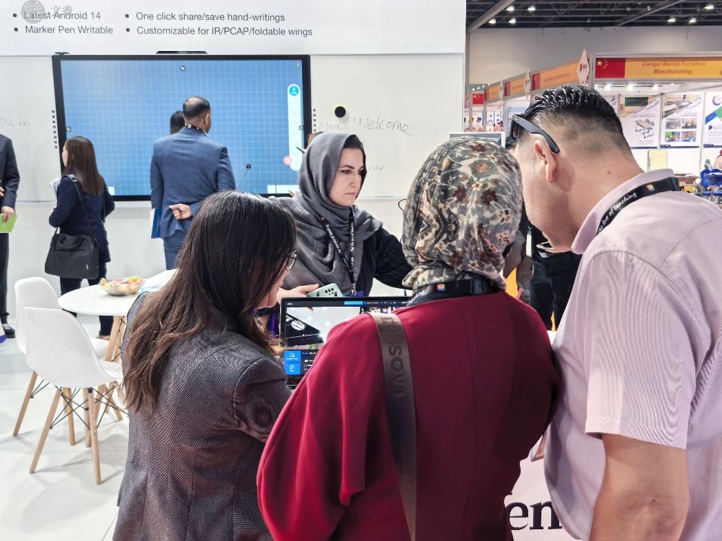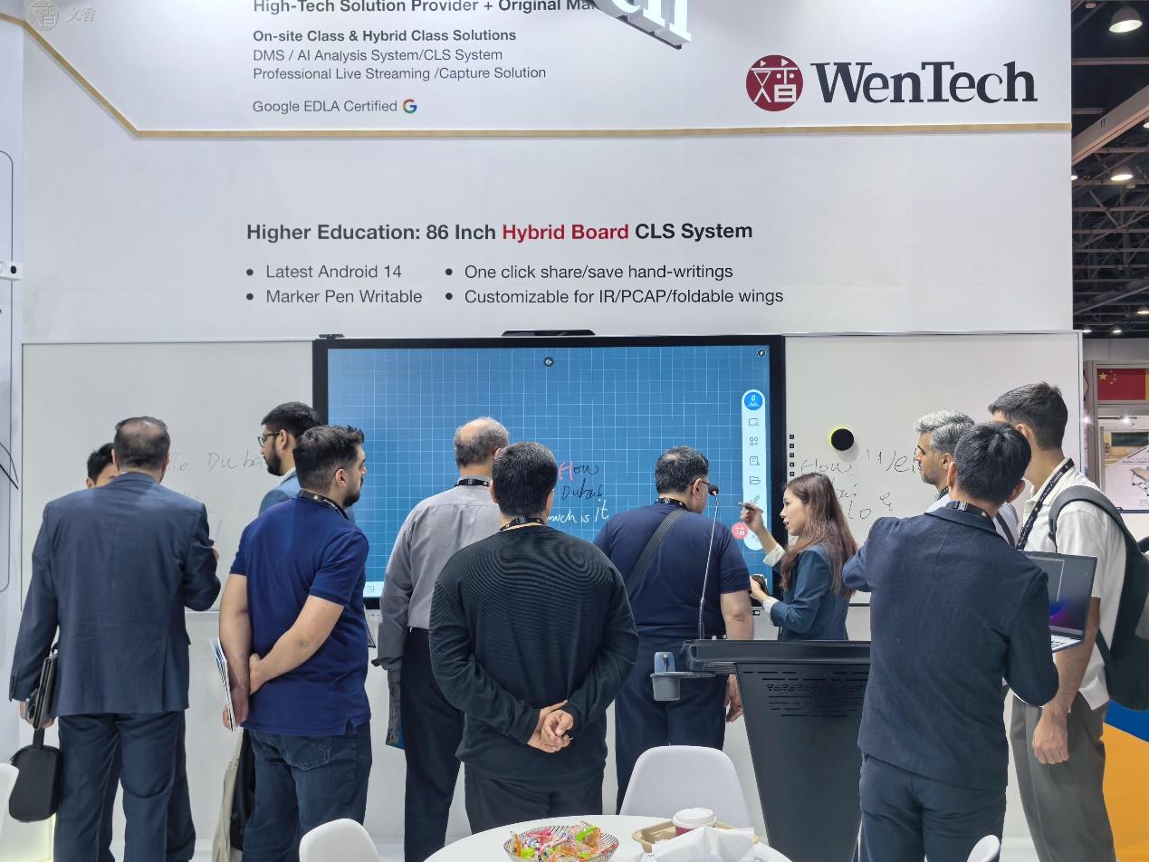 展会期间,文香展位始终人流涌动,来自阿联酋、沙特阿拉伯、埃及等中东地区及全球各地的专业观众纷纷驻足体验、深入洽谈。众多教育部门代表、学校管理者及行业合作伙伴对文香产品的科技实力、场景适配性给予高度评价,现场达成多项合作意向。未来,文香将持续以技术创新为核心,聚焦教育行业痛点,打造更多贴合全球用户需求的智能教育解决方案,助力世界各地教育高质量发展,让科技赋能教育无远弗届。