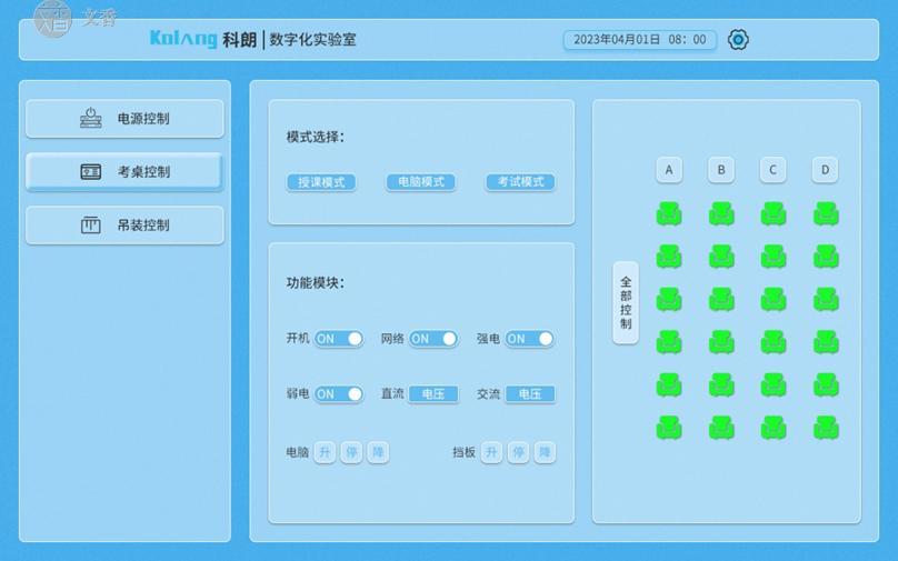 文香自主研发的实验室智能控制系统是教师的得力助手。通过教师平板,一键开机即联网,无需外网也能集中、可视化管理实验室内的给排水、供电、照明等基础设施,更能精准控制智能实验桌上的显示器、摄像头、安全挡板的升降。直观的可视化界面设计,操作简单易上手,显著降低了教师使用智能化设备的门槛和负担,让教师能将更多精力专注于教学本身。