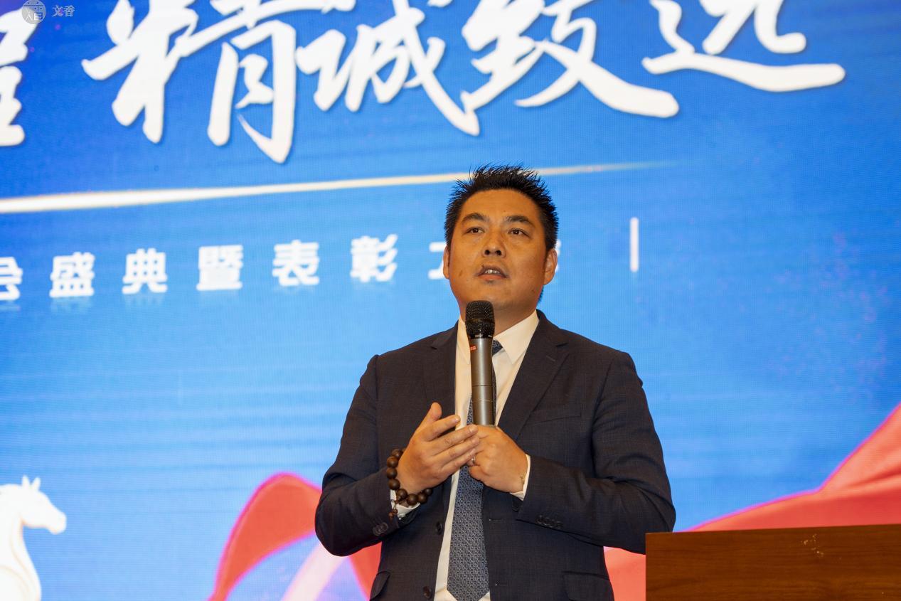 颁奖礼后,文香董事长朱玉荣为大会作闭幕总结发言。在半小时的讲话中,他感谢了全体员工过去一年的辛勤付出,并指出2026年是文香战略落地的关键一年。他鼓励大家以归零的心态再出发,以此次大会为起点,统一思想、坚定信心,共同开创更加辉煌的未来。