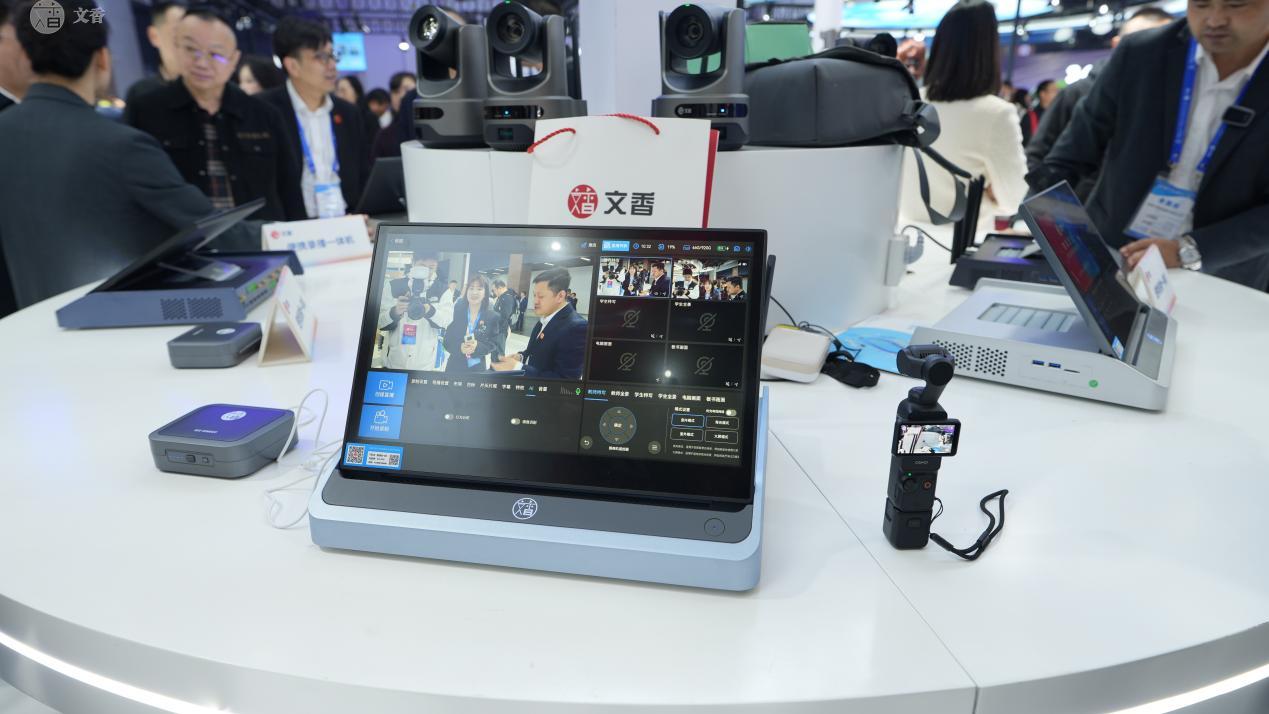 在AI随行展区,文香便携录播以"轻量随行、专业随心"的创新设计备受瞩目。整套系统集智能跟踪、虚拟抠像与云端协处于一体,无需专业布线,三分钟快速部署,完美支持户外教学、流动教研、跨区巡讲等多场景专业级录制需求。本次展会重点展示了其全无线协作能力。