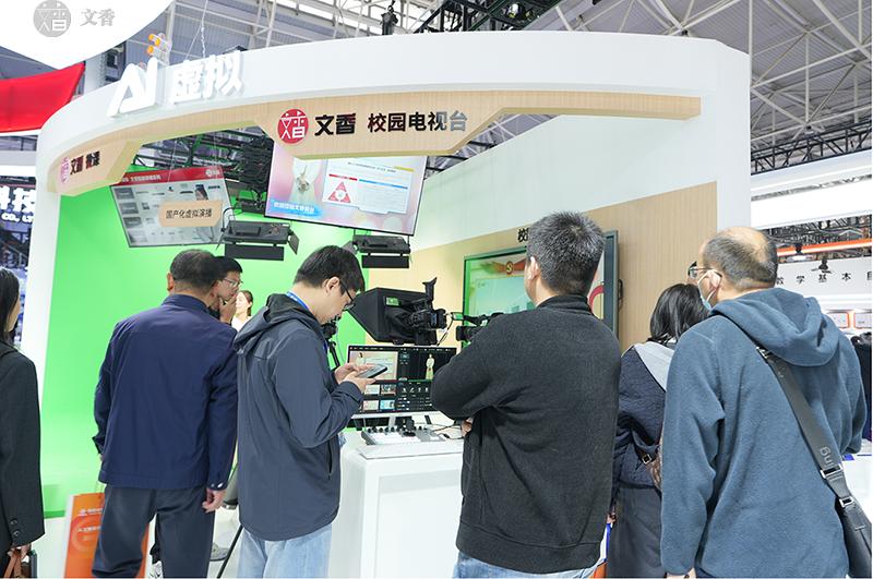 在虚拟演播展区,文香虚拟解决方案以其"小空间大作为"的特点引发关注。系统采用广播级AI抠像与真三维渲染技术,实现虚拟场景与实拍画面的智能融合,为学校打造专业级的视听内容制作中心。