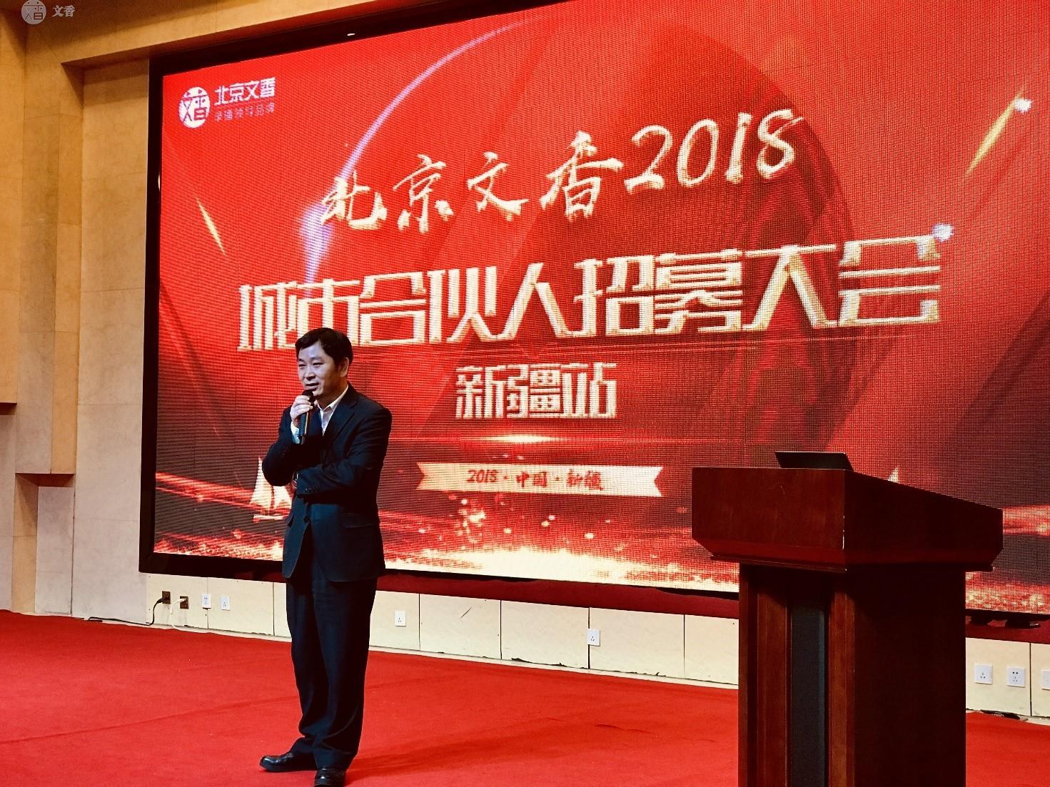 3月23日,北京文香2018城市合伙人招募大会第十站——新疆站在乌鲁木齐南航明珠国际酒店顺利召开。北京文香执行总裁章鸿辉,西北大区销售总经理曹湘,体育事业部销售总监陈岗,新疆销售总经理赵中甲及销售总监熊博,迪乐姆合伙人刘雅男,和盛前沿市场推广经理魏常伟等参加会议。会议邀请到近200名合作伙伴出席本次会议,人员辐射到整个新疆区域。