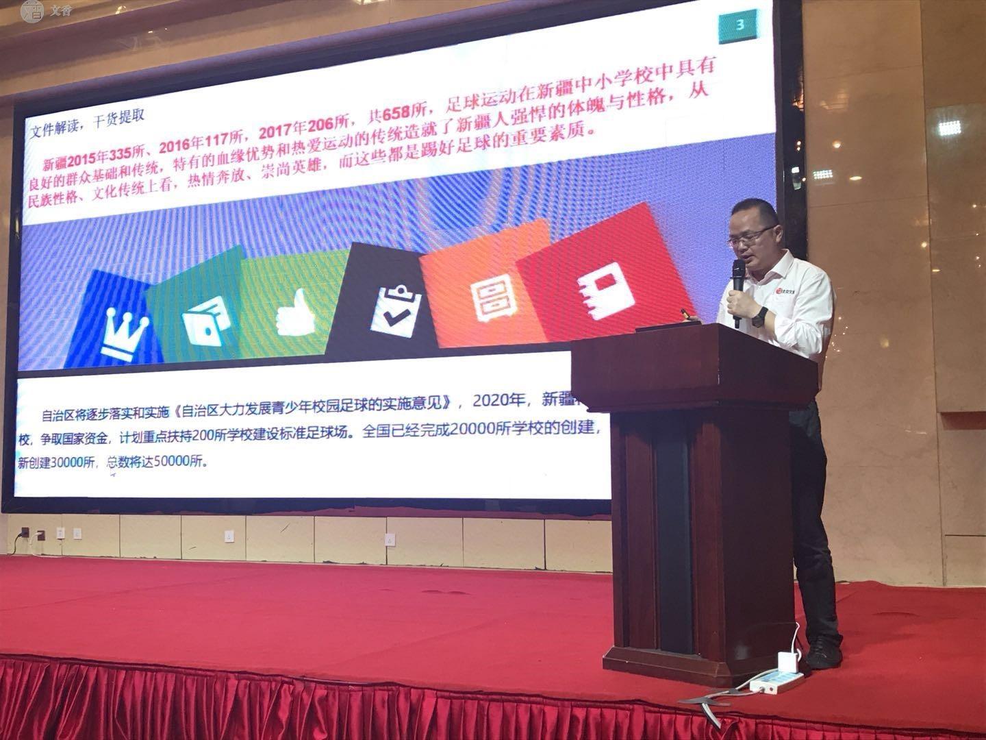 体育事业部销售经理陈岗对文香体育录播进行了讲解。讲解中明确提出国家大力发展中国足球的政策支持,以及当前新疆地区足球录播市场容量,引发现场热议。
